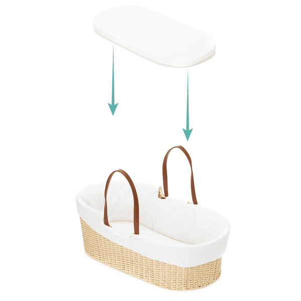 Por supuesto, los materiales utilizados también desempeñan un papel importante. Por eso se utilizaron únicamente materiales naturales tanto para la cesta como para la cubierta. La cesta está tejida según el método tradicional de construcción de cestas a partir de un papel de mimbre especial resistente al desgarro sobre un marco de Metal l. La funda, incluida la del colchón, está hecha de algodón puro al 100% y es extraíble y lavable. La cesta de Moisés también se puede transportar maravillosamente en las prácticas asas de transporte hechas de cuero vegano de PU.