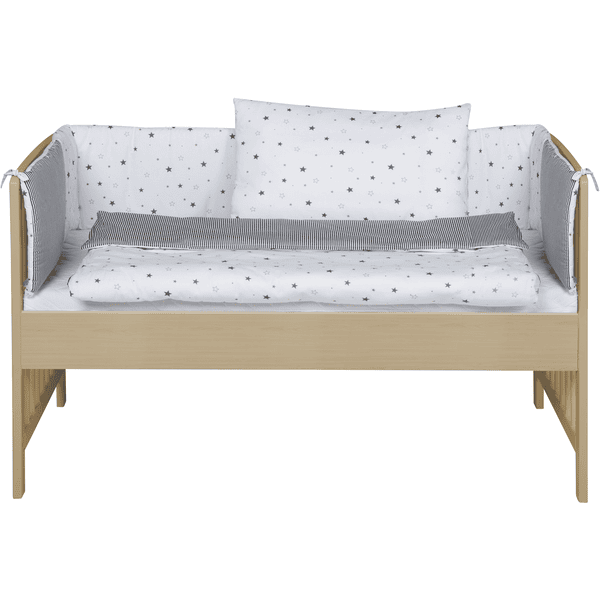 La cuna colecho Micky está hecha de madera maciza y se adapta, gracias al ajuste continuo, a todas las camas de los padres. Ideal para los primeros meses de tu bebé.
