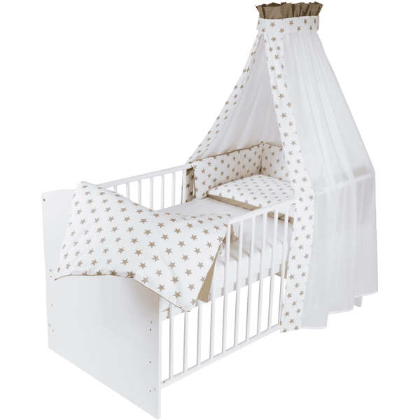 - Set de cuna de 4 piezas que consta de ropa de cama, acolchado y dosel